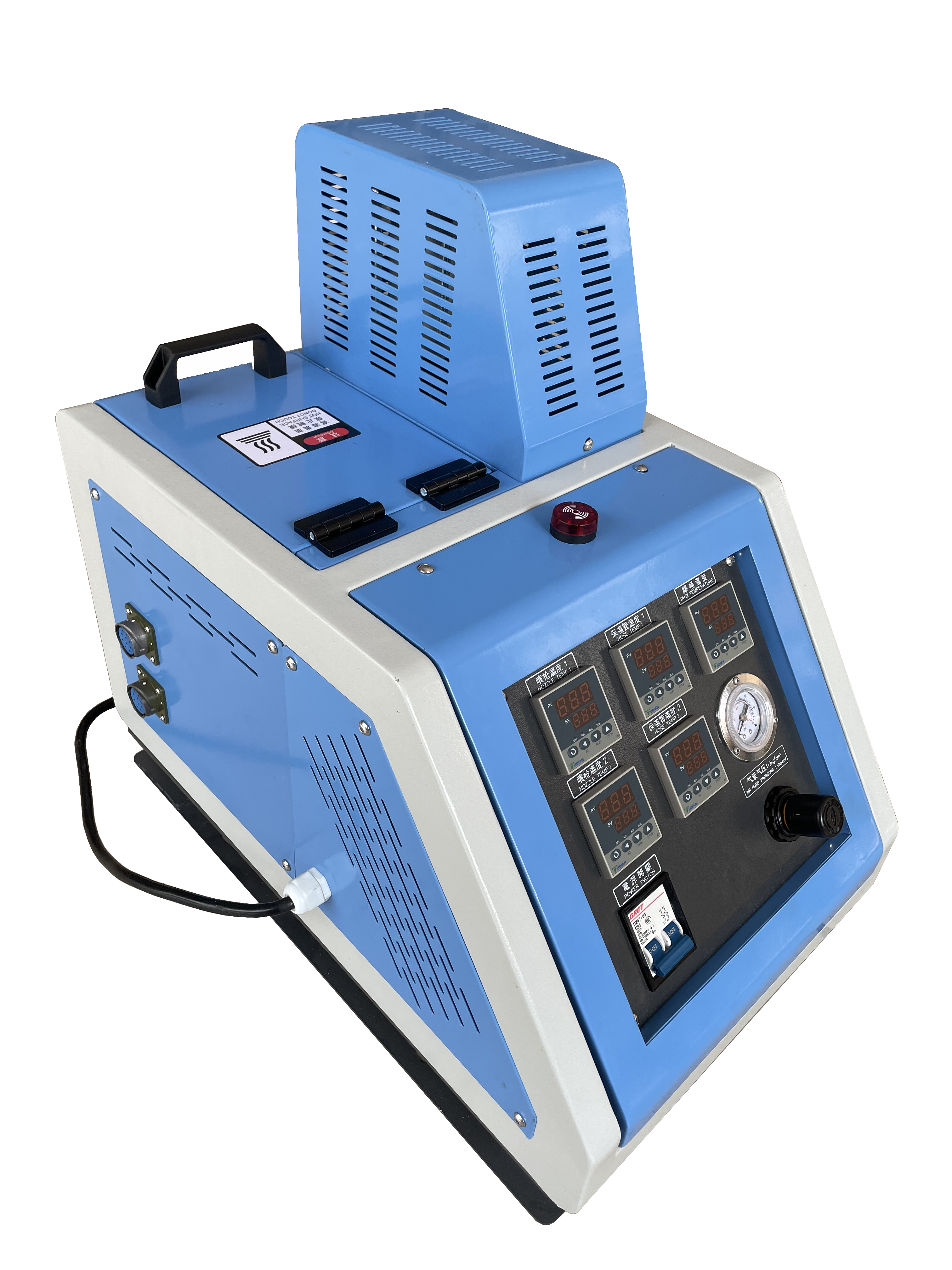 2.熱熔膠管與主機(jī)連接 8 芯電氣接頭, 熱熔膠管與噴槍連接為 4 芯連接器