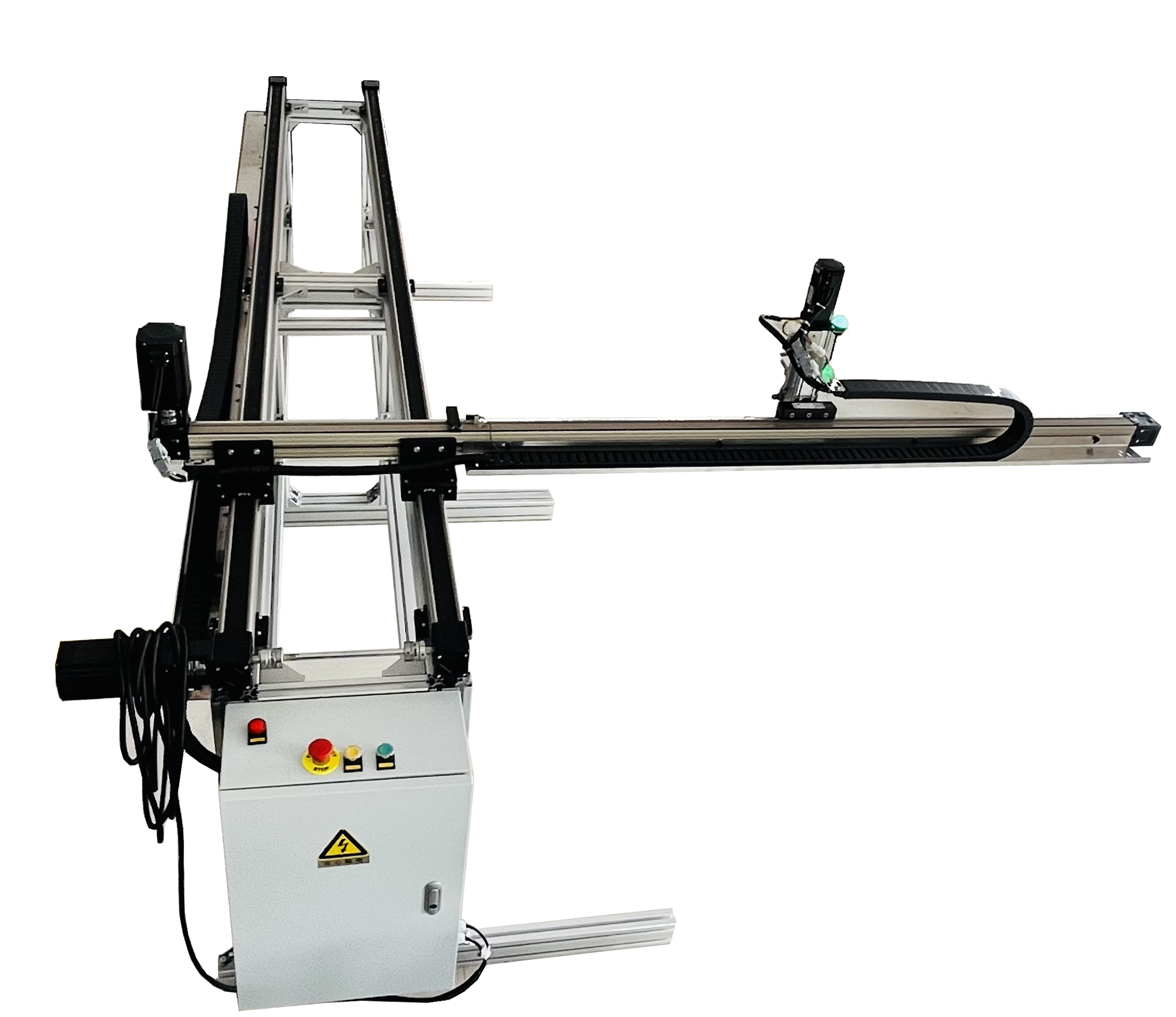 1. 采用鋁合金框架結(jié)構(gòu),清潔衛(wèi)生方便安裝,不生銹,無油漆。 2. 拖鏈式線槽布線,易于折裝維修,達行業(yè)設(shè)計安全標準。 3. 三軸采用伺服電機驅(qū)動,閉環(huán)控制,確保精度。 4. 可編程控制系統(tǒng),可手工輸入,可U盤導入復雜圖形,系統(tǒng)采用三軸差補算法確保圖形精細準確。 5. 可外接熱熔膠機等附加組件實現(xiàn)不同行業(yè)的工藝要求。 6. 配備有三軸行程傳感器,有效防止超程撞機以確保設(shè)備安全。